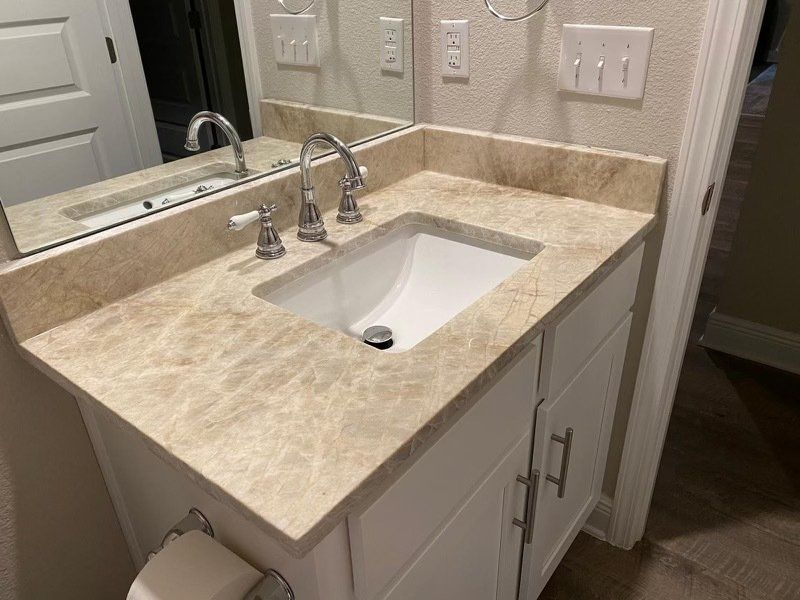 At Rio Stone Flooring, we have been custom-fabricating elegant stone floors, countertops, and other interior fixtures for over 10 years. We take pride in providing our customers with unique and truly elegant constructions they can enjoy for many years to come. With our products, you can choose from a wide variety of colors, grains, and styles of marble and granite to suit your particular style or interior design theme. We’ll work with you to determine the best design for your application and from there we’ll take care of everything, including fabrication and professional installation. Take a look through our gallery of past work below to get an idea of what we can do for you!